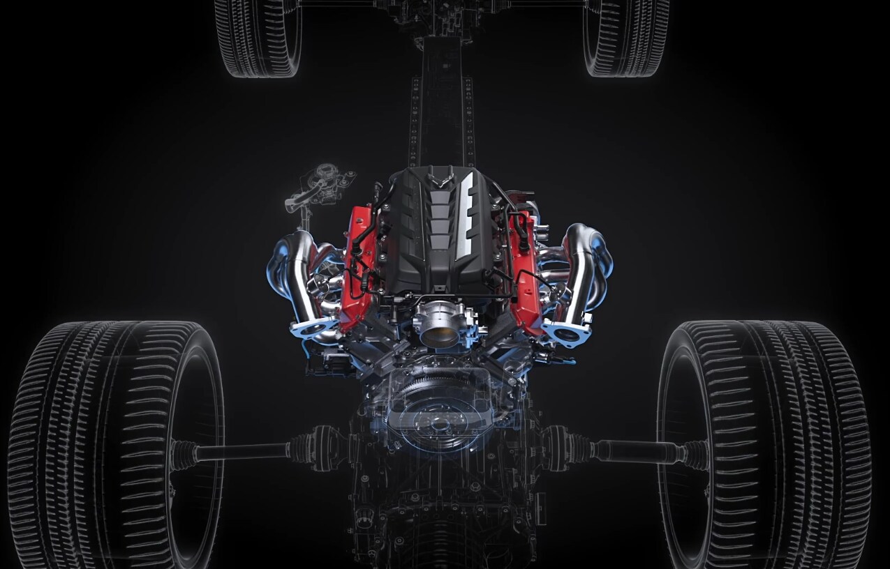 With 495 horsepower and 470 lb.‑ft. of torque, this 6.2L small block powerhouse is designed to thrill on every drive, on both road and track, and contributes to an overall 655 horsepower.¹ It features eight equal‑length intake runners of 210 mm to maximize torque and airflow. A dry‑sump oil scavenge system uses three pumps to ensure oil quality and flow to critical areas during high g‑force cornering and acceleration.