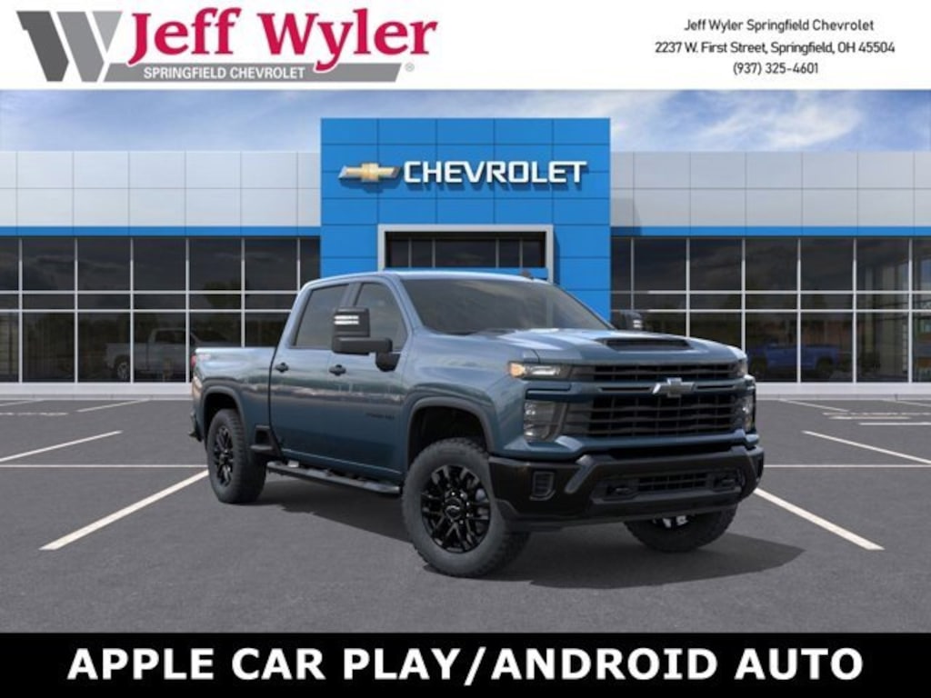 Jeff Wyler Springfield Auto Mall is pleased to offer this attractive 2026 Chevrolet Silverado 2500HD Custom in Lakeshore Blue. Well equipped with: Custom Blackout Package (Black Tailgate Lettering (LPO) and Wheels: 20 High Gloss Black Painted), Custom Convenience Package (10-Way Power Driver Seat Adjuster w/Lumbar, 120-Volt Bed Mounted Power Outlet, 120-Volt Interior Power Outlet, Dual Rear USB Ports (Charge Only), Electric Rear-Window Defogger, LED Cargo Area Lighting, Remote Vehicle Starter System, and Unauthorized Entry Theft-Deterrent System), Suspension Package, 170 Amp Alternator, 2-Speed Electronic Shift Transfer Case, 3.5 Diagonal Monochromatic Display DIC, 3.73 Rear Axle Ratio, 4-Wheel Disc Brakes, 4 Round Black Assist Steps (LPO), 6 Speakers, 6-Speaker Audio System, 720 Cold-Cranking Amps Heavy-Duty Battery, ABS brakes, Air Conditioning, Alloy wheels, AM/FM radio: SiriusXM with 360L, Apple CarPlay/Android Auto, Auto High-beam Headlights, Black Chevytec Spray-On Bedliner, Black Mirror Caps, Bluetooth® For Phone, Brake assist, Chevrolet Connected Access Capable, Cloth Seat Trim, Color-Keyed Carpeting Floor Covering, Compass, Deep-Tinted Glass, Delay-off headlights, Driver door bin, Dual front impact airbags, Dual front side impact airbags, Durabed Pickup Bed, Electronic Cruise Control w/Set & Resume Speed, Electronic Stability Control, Emergency communication system: OnStar, Front 40/20/40 Split-Bench Seats w/Lockable Storage, Front anti-roll bar, Front Center Armrest w/Storage, Front reading lights, Front Rubberized Vinyl Floor Mats, Front wheel independent suspension, Fully automatic headlights, HD Rear Vision Camera, Heated door mirrors, Heated Vertical Trailering Mirrors, Illuminated entry, Locking Tailgate, Low tire pressure warning, Manual Tailgate Function w/No EZ Lift, Manual Tilt-Wheel Steering Column, Occupant sensing airbag, OnStar Services Capable, Outside temperature display, Overhead airbag, Overhead console, Panic alarm, Passenger door bin, Passenger vanity mirror, Power Door Locks, Power door mirrors, Power Front Windows w/Driver Express Up/Down, Power Front Windows w/Passenger Express Down, Power Rear Windows w/Express Down, Power steering, Power windows, Premium audio system: Chevrolet Infotainment 3, Push Button Start, Radio: Chevrolet Infotainment 3 System, Rear 60/40 Folding Bench Seat (Folds Up), Rear reading lights, Rear Rubberized Vinyl Floor Mats, Rear step bumper, Remote Keyless Entry, Remote keyless entry, SiriusXM w/360L Trial Subscription, Speed control, Split folding rear seat, Standard Tailgate, Tachometer, Tilt steering wheel, Traction control, Trip computer, Turn signal indicator mirrors, Variably intermittent wipers, Voltmeter, Wheels: 20 10-Spoke Machined Aluminum, Wi-Fi Hotspot Capable, and Wireless Phone Projection.Wyler Family First Package Includes: NanoCure Appearance Protection: Exterior & Interior Chemical Sealant Applied to Protect Against Environmental Hazards (7 Year Warranty Coverage). Pulse- Rear end Collision Avoidance System Theft Deterrent Strategy gives you 5 Years of Coverage against vehicle Theft, Offering up to a $5,000 benefit. Available Incentives: $1000 - Chevrolet Consumer Cash Program. Exp. 11/03/2025