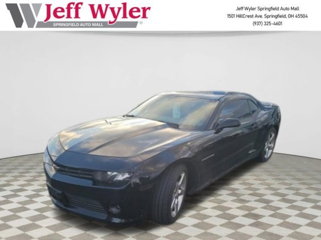 Jeff Wyler Springfield Auto Mall is pleased to offer this great-looking 2014 Chevrolet Camaro 1LT in Black. Well equipped with: Preferred Equipment Group 1LT (2 Front Cup Holders, 3-Spoke Leather-Wrapped Steering Wheel, 4-Wheel Antilock 4-Wheel Disc Brakes, 6-Speaker Audio System, Analog Instrumentation, Carpeted Front Floor Mats, Electric Rear-Window Defogger, Electronic Cruise Control, LATCH System, Leather-Wrapped Shift Knob, Maintenance-Free Battery, Manual Rake & Telescopic Steering Column, OnStar 6 Months Directions & Connections Plan, Power Programmable Door Locks, Remote Keyless Entry, SiriusXM Satellite Radio, StabiliTrak, Stainless-Steel Dual-Outlet Exhaust, Steering Wheel Mounted Audio Controls, and USB Port Audio System Feature), 18 Painted Aluminum Wheels, 19 Bright Aluminum Wheels, 4-Wheel Disc Brakes, 6 Speakers, 6-Way Power Driver Adjuster w/Power Recline, 6-Way Power Fr Passenger Adjuster w/Power Recline, ABS brakes, Air Conditioning, Alloy wheels, AM/FM radio: SiriusXM, Brake assist, Bumpers: body-color, Compass, Delay-off headlights, Driver door bin, Driver vanity mirror, Dual front impact airbags, Dual front side impact airbags, Electronic Stability Control, Emergency communication system: OnStar Directions & Connections, Four wheel independent suspension, Front anti-roll bar, Front Bucket Seats, Front Center Armrest, Front fog lights, Front License Plate Bracket, Front reading lights, Front Sport Bucket Seats, Fully automatic headlights, Illuminated entry, Leather Shift Knob, Low tire pressure warning, Occupant sensing airbag, Outside temperature display, Overhead airbag, Panic alarm, Passenger door bin, Passenger vanity mirror, Power door mirrors, Power driver seat, Power passenger seat, Power steering, Power Sunroof w/Express-Open & Venting, Power windows, Premium audio system: Chevrolet MyLink, Radio data system, Radio: AM/FM Stereo w/Color Touch, Rear anti-roll bar, Rear window defroster, Remote keyless entry, Security system, Speed control, Speed-sensing steering, Sport Cloth Seat Trim, Steering wheel mounted audio controls, Tachometer, Telescoping steering wheel, Tilt steering wheel, Traction control, Trip computer, and Variably intermittent wipers. Awards:* JD Power Dependability Study * 2014 KBB.com 10 Coolest New Cars Under $25,000 * 2014 KBB.com Best Resale Value Awards * 2014 KBB.com Brand Image Awards Reviews:* Whether you’re a 20-something performance enthusiast seeking a car that boasts loads of power and aggressive looks, or a mid-lifer ready to get your crisis on/relive your youth, the 2014 Camaro offers serious thrills for the money. Source: KBB.com* Strong acceleration with any engine; head-turning looks; good V6 fuel economy; capable handling. Source: EdmundsAsk about available certifications. Used vehicles 10 years of age or newer with less than 100,000 miles are eligible for the Wyler Assurance Program, but eligible vehicles must pass our reconditioning process and multi-point inspection. Provided the vehicle passes inspection, vehicles will be eligible for the 6 month/6,000 mile limited warranty. The 6 month/6,000 mile limited warranty is NOT available on AS-IS vehicles, wholesale vehicles, lease buyback/pass-thru vehicles or un-inspected vehicles. Note that this program can also apply to vehicles where the remaining factory coverage is less than 6 months or 6,000 miles. Please check the Federal Trade Commission (FTC) Buyers guide on the vehicle for full details as to whether or not warranty coverage may apply. Contact Dealer for additional details. The Wyler Assurance 6 month/6,000 Mile limited warranty ends 6 months from the date of the Retail Purchase Agreement (BUYERS ORDER) or when the vehicle's odometer registers 6,000 additional miles to the mileage listed on the BUYERS ORDER, whichever comes first. Your Deductible - The warranty holder on your contract pays the first $100 of each covered repair.