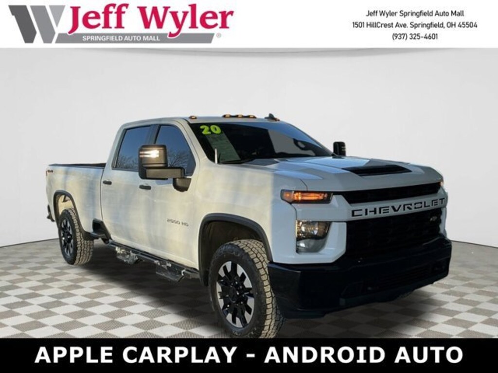 Jeff Wyler Springfield Auto Mall is proud to offer this superb-looking 2020 Chevrolet Silverado 2500HD Custom in Summit White. Well equipped with: Custom Convenience Package (Electric Rear-Window Defogger, Integrated Trailer Brake Controller, LED Cargo Area Lighting, Manual Tailgate Function w/EZ Lift, and Remote Vehicle Starter System), Custom Value Package (Auto-Dimming Inside Rear-View Mirror and Heated & Auto-Dimming Vertical Trailering Mirrors), Gooseneck/5th Wheel Package (Black Chevytec Spray-On Bedliner w/Chevrolet Logo), Gooseneck/5th Wheel Prep Package, Infotainment Package (4G LTE Wi-Fi Hotspot Capable, Chevrolet Connected Access Capable, Compass, OnStar & Chevrolet Connected Services Capable, and SiriusXM Radio), Preferred Equipment Group 1CX (170 Amp Alternator, 2-Speed Electronic Shift Transfer Case, 3.5 Diagonal Monochromatic Display DIC, Black Mirror Caps, Bluetooth® For Phone, Body Color Front Grille, Color-Keyed Carpeting Floor Covering, Deep-Tinted Glass, Electronic Cruise Control w/Set & Resume Speed, Front Rubberized Vinyl Floor Mats, Heated Vertical Trailering Mirrors, Locking Tailgate, Manual Tailgate Function w/No EZ Lift, Manual Tilt-Wheel Steering Column, Power Door Locks, Power Front Windows w/Driver Express Up/Down, Power Front Windows w/Passenger Express Down, Power Rear Windows w/Express Down, Rear 60/40 Folding Bench Seat (Folds Up), Rear Rubberized Vinyl Floor Mats, and Remote Keyless Entry), Suspension Package, 3.73 Rear Axle Ratio, 4-Wheel Disc Brakes, 6 Speakers, 6-Speaker Audio System, 720 Cold-Cranking Amps Heavy-Duty Battery, ABS brakes, Air Conditioning, Alloy wheels, AM/FM radio, Apple CarPlay/Android Auto, Brake assist, Cloth Seat Trim, Delay-off headlights, Driver door bin, Dual front impact airbags, Dual front side impact airbags, Electronic Stability Control, Exterior Parking Camera Rear, Front 40/20/40 Split-Bench Seat w/No Storage, Front anti-roll bar, Front Center Armrest, Front License Plate Kit, Front reading lights, Front wheel independent suspension, Fully automatic headlights, Heated door mirrors, Illuminated entry, LED Smoked Amber Roof Marker Lamps, Low tire pressure warning, Occupant sensing airbag, Outside temperature display, Overhead airbag, Overhead console, Panic alarm, Passenger door bin, Passenger vanity mirror, Power door mirrors, Power steering, Power windows, Premium audio system: Chevrolet Infotainment 3, Radio: Chevrolet Infotainment 3 System, Rear reading lights, Rear step bumper, Remote keyless entry, Speed control, Split folding rear seat, Tachometer, Tilt steering wheel, Traction control, Trip computer, Turn signal indicator mirrors, Variably intermittent wipers, Voltmeter, and Wheels: 20 Machined Alum w/Black Painted Accents. Ask about available certifications. Used vehicles 10 years of age or newer with less than 100,000 miles are eligible for the Wyler Assurance Program, but eligible vehicles must pass our reconditioning process and multi-point inspection. Provided the vehicle passes inspection, vehicles will be eligible for the 6 month/6,000 mile limited warranty. The 6 month/6,000 mile limited warranty is NOT available on AS-IS vehicles, wholesale vehicles, lease buyback/pass-thru vehicles or un-inspected vehicles. Note that this program can also apply to vehicles where the remaining factory coverage is less than 6 months or 6,000 miles. Please check the Federal Trade Commission (FTC) Buyers guide on the vehicle for full details as to whether or not warranty coverage may apply. Contact Dealer for additional details. The Wyler Assurance 6 month/6,000 Mile limited warranty ends 6 months from the date of the Retail Purchase Agreement (BUYERS ORDER) or when the vehicle's odometer registers 6,000 additional miles to the mileage listed on the BUYERS ORDER, whichever comes first. Your Deductible - The warranty holder on your contract pays the first $100 of each covered repair.