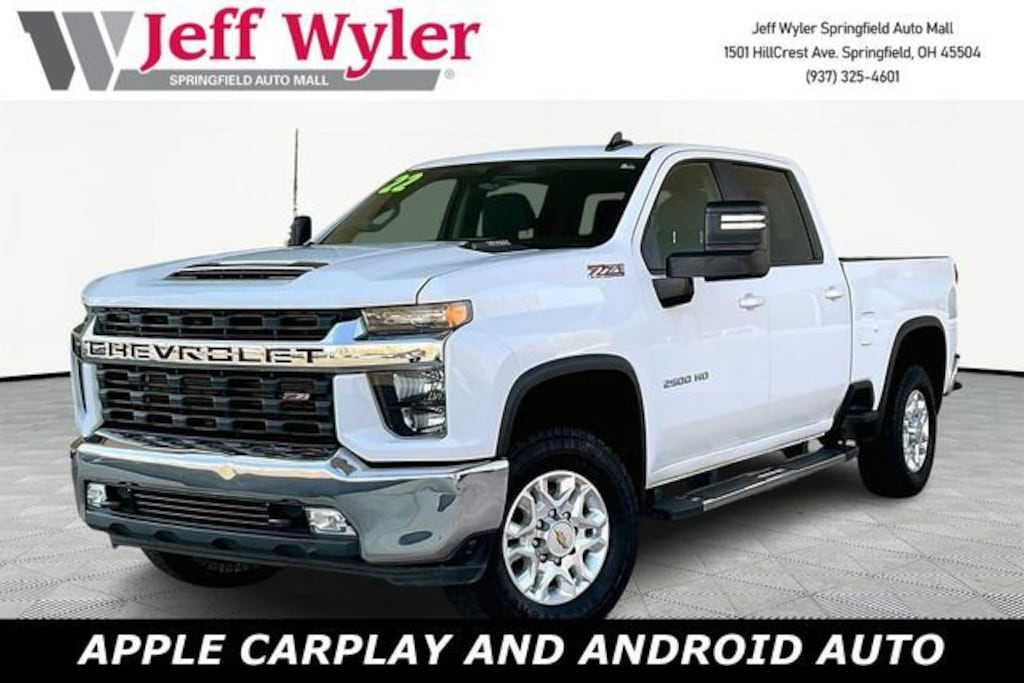 Jeff Wyler Springfield Auto Mall is very proud to offer this gorgeous 2022 Chevrolet Silverado 2500HD LT in Summit White. Well equipped with: Convenience Package (10-Way Power Driver Seat Adjuster w/Lumbar, 12-Volt Rear Auxiliary Power Outlet, Dual Charge-Only USB Ports (2nd Row), Dual-Zone Automatic Climate Control, Electric Rear-Window Defogger, Electrical Lock Control Steering Column, Front 40/20/40 Split-Bench Seats w/Lockable Storage, Front LED Fog Lamps, Heated Driver & Front Outboard Passenger Seating, Heated Steering Wheel, Keyless Open & Start, Leather-Wrapped Steering Wheel, LED Cargo Area Lighting, Manual Tilt & Telescoping Steering Column, Rear Wheelhouse Liners, Remote Vehicle Starter System, and Unauthorized Entry Theft-Deterrent System), Preferred Equipment Group 1LT (170 Amp Alternator, 2 USB Ports (1st Row), 2-Speed Electronic Shift Transfer Case, 4-Way Manual Driver Seat Adjuster, 4.2 Diagonal Color Display Driver Info Center, Black Mirror Caps, Bluetooth® For Phone, Chevrolet Connected Access Capable, Chrome Front Grille, Color-Keyed Carpeting Floor Covering, Compass, Deep-Tinted Glass, Electronic Cruise Control w/Set & Resume Speed, EZ Lift Power Lock & Release Tailgate, Front Rubberized Vinyl Floor Mats, Halogen Reflector Headlamps, Heated Vertical Trailering Mirrors, Integrated Trailer Brake Controller, Manual Tilt-Wheel Steering Column, OnStar & Chevrolet Connected Services Capable, Power Door Locks, Power Front Windows w/Driver Express Up/Down, Power Front Windows w/Passenger Express Down, Power Rear Windows w/Express Down, Rear 60/40 Folding Bench Seat (Folds Up), Rear Rubberized Vinyl Floor Mats, Rear Vision Camera, Remote Keyless Entry, SiriusXM Radio, Standard Tailgate, Steering Wheel Audio Controls, Urethane Steering Wheel, and Wi-Fi Hotspot Capable), Suspension Package, Z71 Off-Road Package (Hill Descent Control and Off-Road Suspension), 17 Machined Aluminum Wheels, 4-Wheel Disc Brakes, 6 Speakers, 6-Speaker Audio System, 6 Rectangular Chromed Tubular Assist Steps, 720 Cold-Cranking Amps Heavy-Duty Battery, ABS brakes, Air Conditioning, Alloy wheels, AM/FM radio: SiriusXM, Apple CarPlay/Android Auto, Black Chevytec Spray-On Bedliner w/Chevrolet Logo, Brake assist, Bumpers: chrome, Cloth Seat Trim, Delay-off headlights, Driver door bin, Driver vanity mirror, Dual 220-Amp Primary/170-Amp Auxiliary Alternators, Dual front impact airbags, Dual front side impact airbags, Electronic Stability Control, Engine Block Heater, Exhaust Brake, Front 40/20/40 Split-Bench Seats, Front anti-roll bar, Front Center Armrest w/Storage, Front License Plate Kit, Front reading lights, Front wheel independent suspension, Fully automatic headlights, Heated door mirrors, Illuminated entry, Low tire pressure warning, Not Equipped w/Driver & Fr Passenger Heated Seats, Not Equipped w/Heated Steering Wheel (DISC), Occupant sensing airbag, Outside temperature display, Overhead airbag, Overhead console, Panic alarm, Passenger door bin, Passenger vanity mirror, Power door mirrors, Power steering, Power windows, Premium audio system: Chevrolet Infotainment 3, Radio: Chevrolet Infotainment 3 System, Rear reading lights, Rear step bumper, Remote keyless entry, Speed control, Split folding rear seat, Steering wheel mounted audio controls, Tachometer, Tilt steering wheel, Traction control, Trip computer, Turn signal indicator mirrors, Variably intermittent wipers, Voltmeter, Wheels: 18 Machined Alum w/Silver Painted Accents, and Winter Grille Cover. Ask about available certifications. Used vehicles 10 years of age or newer with less than 100,000 miles are eligible for the Wyler Assurance Program, but eligible vehicles must pass our reconditioning process and multi-point inspection. Provided the vehicle passes inspection, vehicles will be eligible for the 6 month/6,000 mile limited warranty. The 6 month/6,000 mile limited warranty is NOT available on AS-IS vehicles, wholesale vehicles,