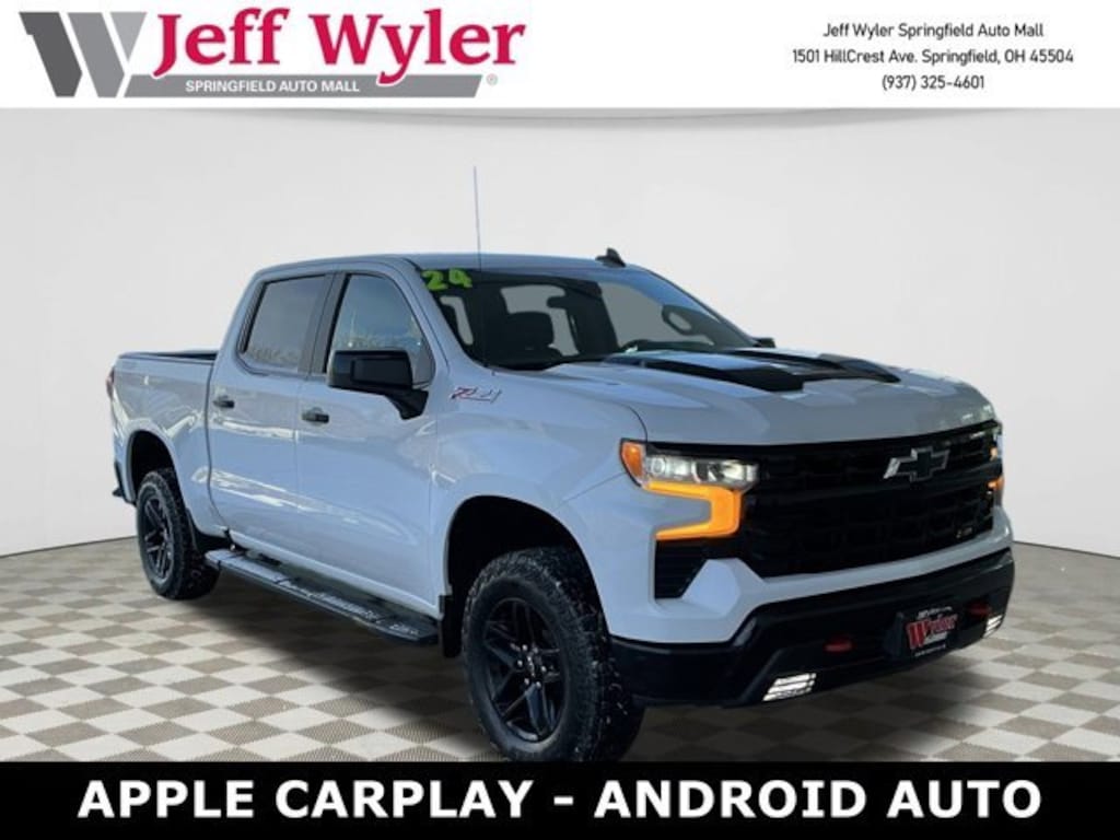 Jeff Wyler Springfield Auto Mall is proud to offer this superb-looking 2024 Chevrolet Silverado 1500 LT Trail Boss in Summit White. Well equipped with: Convenience Package (10-Way Power Driver Seat w/Lumbar, 120-Volt Bed Mounted Power Outlet, 120-Volt Interior Power Outlet, Dual Rear USB Ports (Charge Only), Dual-Zone Automatic Climate Control, Electric Rear-Window Defogger, Heated Driver & Front Outboard Passenger Seats, Heated Steering Wheel, Keyless Open & Start, Remote Vehicle Starter System, Theft Deterrent System (Unauthorized Entry), and Wrapped Steering Wheel), Preferred Equipment Group 2LT (12.3 Multicolor Reconfigurable Digital Display, 6-Speaker Audio System, All-Weather Floor Liner (LPO) (AAK), Auto-Locking Rear Differential, Bluetooth® For Phone, Chevrolet Connected Access Capable, Color-Keyed Carpeting Floor Covering, Deep-Tinted Glass, Electrical Steering Column Lock, Electronic Cruise Control, EZ Lift Power Lock & Release Tailgate, Front LED Fog Lamps, HD Rear Vision Camera, Heated Power-Adjustable Outside Mirrors, High Gloss Black Mirror Caps, Inside Rear-View Mirror w/Tilt, LED Cargo Area Lighting, OnStar & Chevrolet Connected Services Capable, Performance Red Recovery Hooks, Power Front Windows w/Driver Express Up/Down, Power Front Windows w/Passenger Express Down, Power Rear Windows w/Express Down, Rear 60/40 Folding Bench Seat (Folds Up), SiriusXM w/360L, Standard Tailgate, Steering Wheel Audio Controls, and Wi-Fi Hot Spot Capable), Protection Package (Chevytec Spray-On Black Bedliner and Rear Wheelhouse Liners), Suspension Package (Heavy-Duty Air Filter and Hill Descent Control), Trailering Package (Hitch Guidance), 170 Amp Alternator, 2 USB Data Ports, 220 Amp Alternator, 4-Wheel Disc Brakes, 40/20/40 Front Split-Bench Seat, 6 Speakers, 6 Rectangular Black Tubular Assist Steps (LPO), ABS brakes, Air Conditioning, Alloy wheels, AM/FM radio: SiriusXM with 360L, Auto High-beam Headlights, Automatic Emergency Braking, Automatic temperature control, Auxiliary External Transmission Oil Cooler, Brake assist, Cloth Seat Trim, Compass, Delay-off headlights, Driver door bin, Driver vanity mirror, Dual Exhaust w/Polished Outlets, Dual front impact airbags, Dual front side impact airbags, Electronic Stability Control, Electronic Transmission Range Selector Shifter, External Engine Oil Cooler, Floor Mounted Center Console, Following Distance Indicator, Forward Collision Alert, Front anti-roll bar, Front Bucket Seats, Front Center Armrest w/Storage, Front dual zone A/C, Front fog lights, Front License Plate Kit, Front Pedestrian Braking, Front reading lights, Front wheel independent suspension, Fully automatic headlights, Heated door mirrors, Heated front seats, Heated steering wheel, Illuminated entry, Integrated Trailer Brake Controller, IntelliBeam Automatic High Beam On/Off, Lane Keep Assist w/Lane Departure Warning, Low tire pressure warning, Occupant sensing airbag, Outside temperature display, Overhead airbag, Overhead console, Panic alarm, Passenger door bin, Passenger vanity mirror, Power door mirrors, Power driver seat, Power steering, Power windows, Premium audio system: Chevrolet Infotainment 3 Premium, Radio data system, Radio: Chevrolet Infotainment 3 Premium System, Rear reading lights, Rear step bumper, Rear window defroster, Remote keyless entry, Security system, Single Outlet Exhaust, Speed control, Speed-sensing steering, Split folding rear seat, Steering wheel mounted audio controls, Tachometer, Telescoping steering wheel, Tilt steering wheel, Traction control, Trip computer, Variably intermittent wipers, Voltmeter, Wheels: 18 x 8.5 Black Painted Aluminum, and Wireless Charging. Ask about available certifications. Used vehicles 10 years of age or newer with less than 100,000 miles are eligible for the Wyler Assurance Program, but eligible vehicles must pass our reconditioning process and multi-point inspection. Provided the vehicle passes inspection, vehicles will be eligible for the 6 month/6