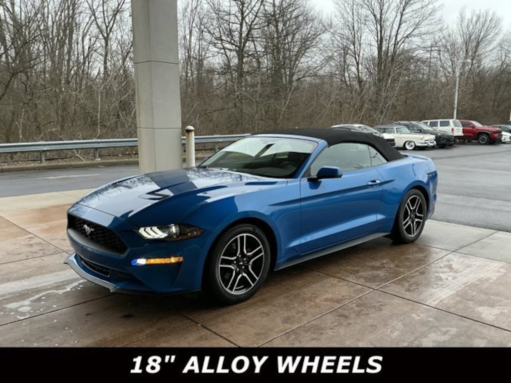 Jeff Wyler Springfield Auto Mall is very proud to offer this stunning-looking 2019 Ford Mustang EcoBoost Premium in Blue Metallic. Well equipped with: ABS brakes, Alloy wheels, Compass, Electronic Stability Control, Front dual zone A/C, Heated door mirrors, Heated front seats, Illuminated entry, Low tire pressure warning, Remote keyless entry, Traction control, 4-Wheel Disc Brakes, 9 Speakers, Air Conditioning, AM/FM radio: SiriusXM, AM/FM Stereo, AppLink/Apple CarPlay and Android Auto, Auto-dimming Rear-View mirror, Automatic temperature control, Brake assist, Bumpers: body-color, Climate Controlled Heated/Cooled Front Seats, Convertible roof lining, Delay-off headlights, Driver door bin, Driver vanity mirror, Dual front impact airbags, Dual front side impact airbags, Emergency communication system: 911 Assist, Exterior Parking Camera Rear, Four wheel independent suspension, Front anti-roll bar, Front Bucket Seats, Front Center Armrest, Front fog lights, Front reading lights, Fully automatic headlights, Garage door transmitter, Glass rear window, Knee airbag, Leather Bucket Seats, Leather Shift Knob, Occupant sensing airbag, Outside temperature display, Overhead console, Panic alarm, Passenger door bin, Passenger vanity mirror, Power convertible roof, Power door mirrors, Power driver seat, Power passenger seat, Power steering, Power windows, Radio data system, Rear anti-roll bar, Rear window defroster, Security system, SiriusXM Radio, Speed control, Speed-sensing steering, Speed-Sensitive Wipers, Spoiler, Steering wheel mounted audio controls, SYNC 3 Communications & Entertainment System, Tachometer, Telescoping steering wheel, Tilt steering wheel, Trip computer, Turn signal indicator mirrors, Variably intermittent wipers, Ventilated front seats, Voltmeter, and Wheels: 18 x 8 Machined-Face Aluminum. Awards:* 2019 KBB.com 10 Coolest Cars Under $30,000 Ask about available certifications. Used vehicles 10 years of age or newer with less than 100,000 miles are eligible for the Wyler Assurance Program, but eligible vehicles must pass our reconditioning process and multi-point inspection. Provided the vehicle passes inspection, vehicles will be eligible for the 6 month/6,000 mile limited warranty. The 6 month/6,000 mile limited warranty is NOT available on AS-IS vehicles, wholesale vehicles, lease buyback/pass-thru vehicles or un-inspected vehicles. Note that this program can also apply to vehicles where the remaining factory coverage is less than 6 months or 6,000 miles. Please check the Federal Trade Commission (FTC) Buyers guide on the vehicle for full details as to whether or not warranty coverage may apply. Contact Dealer for additional details. The Wyler Assurance 6 month/6,000 Mile limited warranty ends 6 months from the date of the Retail Purchase Agreement (BUYERS ORDER) or when the vehicle's odometer registers 6,000 additional miles to the mileage listed on the BUYERS ORDER, whichever comes first. Your Deductible - The warranty holder on your contract pays the first $100 of each covered repair.