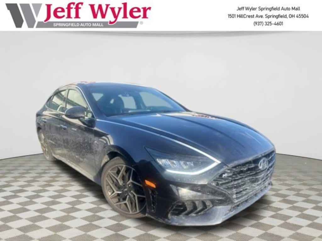 Jeff Wyler Springfield Auto Mall is very proud to offer this handsome 2023 Hyundai Sonata N Line in Carbon Blue. Well equipped with: Option Group 01, 12 Speakers, 4-Wheel Disc Brakes, ABS brakes, Air Conditioning, Alloy wheels, AM/FM radio: SiriusXM, Apple CarPlay & Android Auto, Auto High-beam Headlights, Auto-dimming Rear-View mirror, Automatic temperature control, Brake assist, Bumpers: body-color, Cargo Tray, Carpeted Floor Mats, Delay-off headlights, Driver door bin, Driver vanity mirror, Dual front impact airbags, Dual front side impact airbags, Electronic Stability Control, Emergency communication system: Blue Link Connected Car Service (3-year complimentary subscription), Exterior Parking Camera Rear, Four wheel independent suspension, Front anti-roll bar, Front Bucket Seats, Front Center Armrest, Front dual zone A/C, Front reading lights, Fully automatic headlights, Garage door transmitter: HomeLink, Heated door mirrors, Heated front seats, Heated N Unique Sport Seats, Illuminated entry, Knee airbag, Leather Seating Surfaces, Leather steering wheel, Low tire pressure warning, Navigation System, Occupant sensing airbag, Outside temperature display, Overhead airbag, Overhead console, Panic alarm, Passenger door bin, Passenger vanity mirror, Power door mirrors, Power driver seat, Power moonroof, Power steering, Power windows, Radio data system, Radio: AM/FM/MP3/HD/SiriusXM Display Audio w/Nav, Rear anti-roll bar, Rear Bumper Applique, Rear seat center armrest, Rear side impact airbag, Rear window defroster, Remote keyless entry, Security system, Speed control, Speed-sensing steering, Speed-Sensitive Wipers, Split folding rear seat, Spoiler, Steering wheel mounted audio controls, Tachometer, Telescoping steering wheel, Tilt steering wheel, Traction control, Trip computer, Trunk Cargo Net, Turn signal indicator mirrors, Variably intermittent wipers, and Wheels: N Unique 19 x 8.0J Aluminum Alloy. Ask about available certifications. Used vehicles 10 years of age or newer with less than 100,000 miles are eligible for the Wyler Assurance Program, but eligible vehicles must pass our reconditioning process and multi-point inspection. Provided the vehicle passes inspection, vehicles will be eligible for the 6 month/6,000 mile limited warranty. The 6 month/6,000 mile limited warranty is NOT available on AS-IS vehicles, wholesale vehicles, lease buyback/pass-thru vehicles or un-inspected vehicles. Note that this program can also apply to vehicles where the remaining factory coverage is less than 6 months or 6,000 miles. Please check the Federal Trade Commission (FTC) Buyers guide on the vehicle for full details as to whether or not warranty coverage may apply. Contact Dealer for additional details. The Wyler Assurance 6 month/6,000 Mile limited warranty ends 6 months from the date of the Retail Purchase Agreement (BUYERS ORDER) or when the vehicle's odometer registers 6,000 additional miles to the mileage listed on the BUYERS ORDER, whichever comes first. Your Deductible - The warranty holder on your contract pays the first $100 of each covered repair.