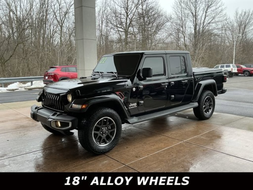 Jeff Wyler Springfield Auto Mall is honored to offer this gorgeous 2022 Jeep Gladiator Overland in Black Clearcoat. Well equipped with: Auxiliary Switch Group (240 Amp Alternator, 700 Amp Maintenance Free Battery, and Auxiliary Switches), Cold Weather Group (Heated Front Seats and Heated Steering Wheel), Popular Equipment Package (#1 Seat Foam Cushion, Black 3-Piece Hard Top, Freedom Panel Storage Bag, Full Length Floor Console Premium Armrest, Leather Trimmed Bucket Seats, Leather Wrapped Park Brake Handle, Leather Wrapped Shift Knob, Premium Wrapped I/P Bezel, Rear Armrest w/Cupholder Seat, Rear Sliding Window, and Rear Window Defroster), Quick Order Package 24G, Trailer Tow Package (Class IV Receiver Hitch, Heavy-Duty Engine Cooling, and Trailer Hitch Zoom), 110 MPH Vehicle Max Speed Calibration, 3.73 Rear Axle Ratio, 4-Wheel Disc Brakes, 9 Speakers, ABS brakes, Air Conditioning, Alloy wheels, AM/FM radio: SiriusXM, Apple CarPlay/Android Auto, Auto-dimming Rear-View mirror, Automatic temperature control, Bluetooth Wireless Speaker, Brake assist, Compass, Corning Gorilla Glass, Delay-off headlights, Driver door bin, Driver vanity mirror, Dual front impact airbags, Dual front side impact airbags, Electronic Stability Control, Emergency communication system: SiriusXM Guardian, Front anti-roll bar, Front Bucket Seats, Front Center Armrest w/Storage, Front dual zone A/C, Front fog lights, Front License Plate Bracket, Front reading lights, Fully automatic headlights, Garage door transmitter, Heated door mirrors, Illuminated entry, Integrated roll-over protection, Leather steering wheel, Low tire pressure warning, MOPAR All-Weather Slush Mats, Navigation System, Normal Duty Plus Suspension, Occupant sensing airbag, Outside temperature display, Overland Cloth Bucket Seats, Panic alarm, ParkView Rear Back-Up Camera, Passenger door bin, Passenger vanity mirror, Power door mirrors, Power steering, Power windows, Radio data system, Radio: Uconnect 4C Nav w/8.4 Display, Rear anti-roll bar, Rear reading lights, Remote keyless entry, Remote Start System, Security system, Speed control, Split folding rear seat, Steering wheel mounted audio controls, Tachometer, Telescoping steering wheel, Tilt steering wheel, Traction control, Trip computer, Variably intermittent wipers, Voltmeter, and Wheels: 18 x 7.5 Granite Crystal Aluminum. Ask about available certifications. Used vehicles 10 years of age or newer with less than 100,000 miles are eligible for the Wyler Assurance Program, but eligible vehicles must pass our reconditioning process and multi-point inspection. Provided the vehicle passes inspection, vehicles will be eligible for the 6 month/6,000 mile limited warranty. The 6 month/6,000 mile limited warranty is NOT available on AS-IS vehicles, wholesale vehicles, lease buyback/pass-thru vehicles or un-inspected vehicles. Note that this program can also apply to vehicles where the remaining factory coverage is less than 6 months or 6,000 miles. Please check the Federal Trade Commission (FTC) Buyers guide on the vehicle for full details as to whether or not warranty coverage may apply. Contact Dealer for additional details. The Wyler Assurance 6 month/6,000 Mile limited warranty ends 6 months from the date of the Retail Purchase Agreement (BUYERS ORDER) or when the vehicle's odometer registers 6,000 additional miles to the mileage listed on the BUYERS ORDER, whichever comes first. Your Deductible - The warranty holder on your contract pays the first $100 of each covered repair.