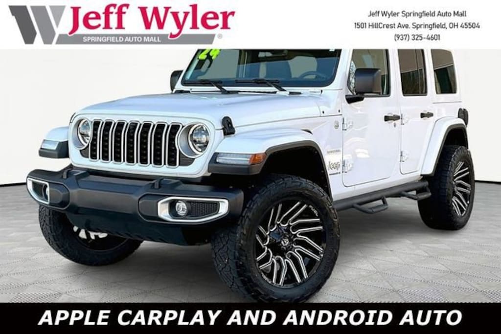 Jeff Wyler Springfield Auto Mall is delighted to offer this gorgeous-looking 2024 Jeep Wrangler Sahara in Bright White Clearcoat. Well equipped with: Quick Order Package 22G Sahara, Technology Group (12.3 Touchscreen Display, 4G LTE Wi-Fi Hot Spot, Alpine Premium Audio System, Apple CarPlay, Auto-Dimming Rear-View Mirror, Connected Travel & Traffic Services, Connectivity - US/Canada, Disassociated Touchscreen Display, Google Android Auto, GPS Navigation, HD Radio, Integrated Center Stack Radio, Integrated Off-Road Camera, Integrated Voice Command w/Bluetooth, Radio: Uconnect 5 Nav w/12.3 Display, SiriusXM Radio Service, SiriusXM w/360L, and Universal Garage Door Opener), 110 MPH Vehicle Max Speed Calibration, 3.45 Overall Top Gear Ratio, 4-Wheel Disc Brakes, 8 Speakers, ABS brakes, Air Conditioning, Alloy wheels, AM/FM radio: SiriusXM, Apple CarPlay/Android Auto, Automatic temperature control, Aux Battery, Body Color 3-Piece Hard Top, Brake assist, Cloth Low-Back Bucket Seats, Compass, Delay-off headlights, Driver door bin, Driver vanity mirror, Dual front impact airbags, Dual front side impact airbags, Electronic Stability Control, Emergency communication system: Jeep Connect, Freedom Panel Storage Bag, Front anti-roll bar, Front Bucket Seats, Front Center Armrest w/Storage, Front dual zone A/C, Front fog lights, Front License Plate Bracket, Front reading lights, Fully automatic headlights, Heated door mirrors, Heated front seats, Heated steering wheel, Heavy Duty Suspension w/Gas Shocks, Illuminated entry, Integrated roll-over protection, Low tire pressure warning, MOPAR All-Weather Floor Mats, No Soft Top, Non-Lock Fuel Cap w/o Discriminator, Occupant sensing airbag, Outside temperature display, Overhead airbag, Panic alarm, ParkView Rear Back-Up Camera, Passenger door bin, Passenger vanity mirror, Power door mirrors, Power steering, Power windows, Radio data system, Radio: Uconnect 5 w/12.3 Display, Rear anti-roll bar, Rear reading lights, Rear Window Defroster, Rear Window Wiper/Washer, Remote keyless entry, Security system, Speed control, Split folding rear seat, Steering wheel mounted audio controls, Stop-Start Dual Battery System, Tachometer, Telescoping steering wheel, Tilt steering wheel, Traction control, Trip computer, Variably intermittent wipers, Voltmeter, and Wheels: 18 x 7.5 Machine/Painted Gray. Ask about available certifications. Used vehicles 10 years of age or newer with less than 100,000 miles are eligible for the Wyler Assurance Program, but eligible vehicles must pass our reconditioning process and multi-point inspection. Provided the vehicle passes inspection, vehicles will be eligible for the 6 month/6,000 mile limited warranty. The 6 month/6,000 mile limited warranty is NOT available on AS-IS vehicles, wholesale vehicles, lease buyback/pass-thru vehicles or un-inspected vehicles. Note that this program can also apply to vehicles where the remaining factory coverage is less than 6 months or 6,000 miles. Please check the Federal Trade Commission (FTC) Buyers guide on the vehicle for full details as to whether or not warranty coverage may apply. Contact Dealer for additional details. The Wyler Assurance 6 month/6,000 Mile limited warranty ends 6 months from the date of the Retail Purchase Agreement (BUYERS ORDER) or when the vehicle's odometer registers 6,000 additional miles to the mileage listed on the BUYERS ORDER, whichever comes first. Your Deductible - The warranty holder on your contract pays the first $100 of each covered repair.