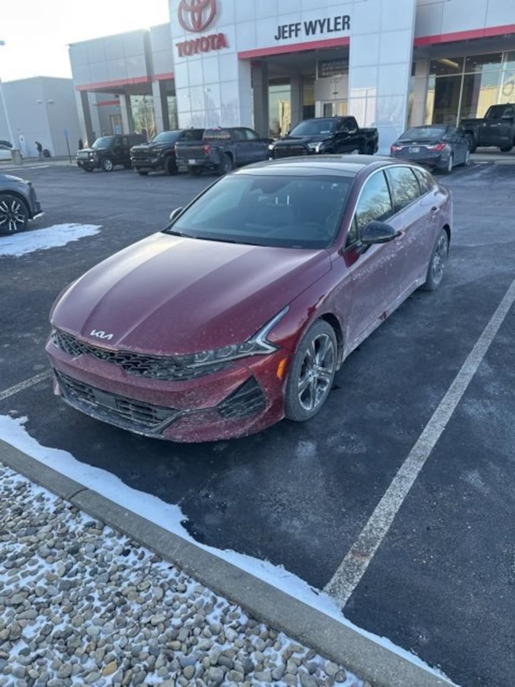Jeff Wyler Springfield Auto Mall is proud to offer this handsome 2022 Kia K5 GT-Line in Passion Red. Well equipped with: GT-Line AWD Premium Package (Heated Steering Wheel, LED Interior Lighting, LED Projection Headlights, Navigation-Based Smart Cruise Control - Curve, Panoramic Sunroof, and Smart Cruise Control w/Stop & Go), 4-Wheel Disc Brakes, 6 Speakers, ABS brakes, Air Conditioning, Alloy wheels, AM/FM radio: SiriusXM, Apple CarPlay & Android Auto, Auto High-beam Headlights, Automatic temperature control, Brake assist, Bumpers: body-color, Cargo Mat, Carpeted Floor Mats, Cloth/Leatherette Seat Trim, Delay-off headlights, Driver door bin, Driver vanity mirror, Dual front impact airbags, Dual front side impact airbags, Electronic Stability Control, Four wheel independent suspension, Front anti-roll bar, Front Bucket Seats, Front Center Armrest, Front dual zone A/C, Front fog lights, Front reading lights, Fully automatic headlights, Heated door mirrors, Heated Front Bucket Seats, Heated front seats, Illuminated entry, Knee airbag, Low tire pressure warning, Mud Guards, Navigation System, Occupant sensing airbag, Outside temperature display, Overhead airbag, Overhead console, Panic alarm, Passenger door bin, Passenger vanity mirror, Power door mirrors, Power driver seat, Power steering, Power windows, Radio data system, Radio: AM/FM/MP3 Audio System, Rear anti-roll bar, Rear seat center armrest, Rear side impact airbag, Rear window defroster, Remote keyless entry, Security system, Speed control, Speed-sensing steering, Split folding rear seat, Spoiler, Sport steering wheel, Steering wheel mounted audio controls, Tachometer, Telescoping steering wheel, Tilt steering wheel, Traction control, Trip computer, Turn signal indicator mirrors, Variably intermittent wipers, and Wheels: 7.5J x 18 Gloss Black Machined Finish Alloy. Ask about available certifications. Used vehicles 10 years of age or newer with less than 100,000 miles are eligible for the Wyler Assurance Program, but eligible vehicles must pass our reconditioning process and multi-point inspection. Provided the vehicle passes inspection, vehicles will be eligible for the 6 month/6,000 mile limited warranty. The 6 month/6,000 mile limited warranty is NOT available on AS-IS vehicles, wholesale vehicles, lease buyback/pass-thru vehicles or un-inspected vehicles. Note that this program can also apply to vehicles where the remaining factory coverage is less than 6 months or 6,000 miles. Please check the Federal Trade Commission (FTC) Buyers guide on the vehicle for full details as to whether or not warranty coverage may apply. Contact Dealer for additional details. The Wyler Assurance 6 month/6,000 Mile limited warranty ends 6 months from the date of the Retail Purchase Agreement (BUYERS ORDER) or when the vehicle's odometer registers 6,000 additional miles to the mileage listed on the BUYERS ORDER, whichever comes first. Your Deductible - The warranty holder on your contract pays the first $100 of each covered repair.
