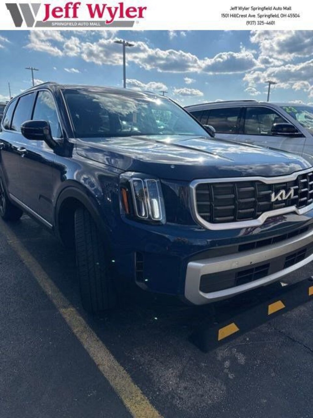 Jeff Wyler Springfield Auto Mall is delighted to offer this beautiful 2023 Kia Telluride S in Midnight Lake Blue. Well equipped with: S Sunroof Package (Power Sunroof w/Sunshade), 3.510 Axle Ratio, 3rd row seats: split-bench, 4-Wheel Disc Brakes, 6 Speakers, ABS brakes, Air Conditioning, Alloy wheels, AM/FM radio: SiriusXM, Apple CarPlay & Android Auto, Auto High-beam Headlights, Automatic temperature control, Brake assist, Bumpers: body-color, Carpet Floor Mats, Delay-off headlights, Driver door bin, Driver vanity mirror, Dual front impact airbags, Dual front side impact airbags, Electronic Stability Control, Emergency communication system: 911 Connect, Exterior Parking Camera Rear, Four wheel independent suspension, Front anti-roll bar, Front Bucket Seats, Front Center Armrest, Front dual zone A/C, Front reading lights, Fully automatic headlights, Heated door mirrors, Heated Front Bucket Seats, Heated front seats, Illuminated entry, Knee airbag, Leather Shift Knob, Leather steering wheel, Low tire pressure warning, Navigation System, Occupant sensing airbag, Outside temperature display, Overhead airbag, Overhead console, Panic alarm, Passenger door bin, Passenger vanity mirror, Power door mirrors, Power driver seat, Power steering, Power windows, Radio data system, Radio: AM/FM Display Audio System, Rear air conditioning, Rear anti-roll bar, Rear audio controls, Rear reading lights, Rear side impact airbag, Rear window defroster, Rear window wiper, Reclining 3rd row seat, Remote keyless entry, Roof rack: rails only, Security system, Smart Key w/ Push Button and Remote Start, Speed control, Speed-sensing steering, Split folding rear seat, Spoiler, Steering wheel mounted audio controls, SynTex Synthetic Leather Seat Trim, Tachometer, Telescoping steering wheel, Tilt steering wheel, Traction control, Trip computer, Turn signal indicator mirrors, Variably intermittent wipers, and Wheels: 20 x 7.5 Black Finish. Ask about available certifications. Used vehicles 10 years of age or newer with less than 100,000 miles are eligible for the Wyler Assurance Program, but eligible vehicles must pass our reconditioning process and multi-point inspection. Provided the vehicle passes inspection, vehicles will be eligible for the 6 month/6,000 mile limited warranty. The 6 month/6,000 mile limited warranty is NOT available on AS-IS vehicles, wholesale vehicles, lease buyback/pass-thru vehicles or un-inspected vehicles. Note that this program can also apply to vehicles where the remaining factory coverage is less than 6 months or 6,000 miles. Please check the Federal Trade Commission (FTC) Buyers guide on the vehicle for full details as to whether or not warranty coverage may apply. Contact Dealer for additional details. The Wyler Assurance 6 month/6,000 Mile limited warranty ends 6 months from the date of the Retail Purchase Agreement (BUYERS ORDER) or when the vehicle's odometer registers 6,000 additional miles to the mileage listed on the BUYERS ORDER, whichever comes first. Your Deductible - The warranty holder on your contract pays the first $100 of each covered repair.