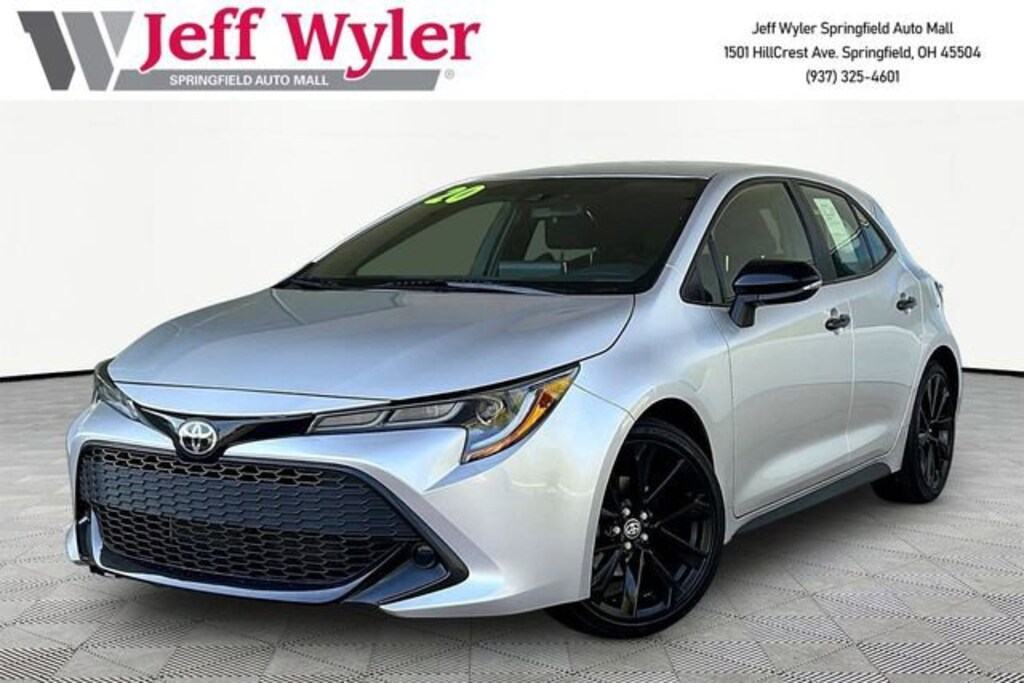 Jeff Wyler Springfield Auto Mall is pleased to offer this attractive 2020 Toyota Corolla Hatchback SE in Silver Metallic. Well equipped with: 4-Wheel Disc Brakes, 6 Speakers, ABS brakes, Air Conditioning, Alloy wheels, AM/FM radio: SiriusXM, Apple CarPlay/Android Auto, Auto High-beam Headlights, Automatic temperature control, Blind Spot Monitor (BSM), Brake assist, Bumpers: body-color, Compass, Delay-off headlights, Driver door bin, Driver vanity mirror, Dual front impact airbags, Dual front side impact airbags, Electronic Stability Control, Emergency communication system: Safety Connect with 1-year trial, Exterior Parking Camera Rear, Fabric Upholstery, Four wheel independent suspension, Front anti-roll bar, Front Bucket Seats, Front Center Armrest, Front reading lights, Heated door mirrors, Illuminated entry, Knee airbag, Leather Shift Knob, Low tire pressure warning, Occupant sensing airbag, Outside temperature display, Overhead airbag, Overhead console, Panic alarm, Passenger door bin, Passenger vanity mirror, Power door mirrors, Power steering, Power windows, Radio data system, Radio: Audio AM/FM, Radio: Audio Plus AM/FM/HD, Rear anti-roll bar, Rear seat center armrest, Rear window defroster, Rear window wiper, Remote keyless entry, Security system, Speed control, Speed-sensing steering, Split folding rear seat, Spoiler, Sport Front Seats, Steering wheel mounted audio controls, Tachometer, Telescoping steering wheel, Tilt steering wheel, Traction control, Trip computer, Turn signal indicator mirrors, Variably intermittent wipers, and Wheels: 16 Silver Metallic Painted Aluminum. Ask about available certifications. Used vehicles 10 years of age or newer with less than 100,000 miles are eligible for the Wyler Assurance Program, but eligible vehicles must pass our reconditioning process and multi-point inspection. Provided the vehicle passes inspection, vehicles will be eligible for the 6 month/6,000 mile limited warranty. The 6 month/6,000 mile limited warranty is NOT available on AS-IS vehicles, wholesale vehicles, lease buyback/pass-thru vehicles or un-inspected vehicles. Note that this program can also apply to vehicles where the remaining factory coverage is less than 6 months or 6,000 miles. Please check the Federal Trade Commission (FTC) Buyers guide on the vehicle for full details as to whether or not warranty coverage may apply. Contact Dealer for additional details. The Wyler Assurance 6 month/6,000 Mile limited warranty ends 6 months from the date of the Retail Purchase Agreement (BUYERS ORDER) or when the vehicle's odometer registers 6,000 additional miles to the mileage listed on the BUYERS ORDER, whichever comes first. Your Deductible - The warranty holder on your contract pays the first $100 of each covered repair.