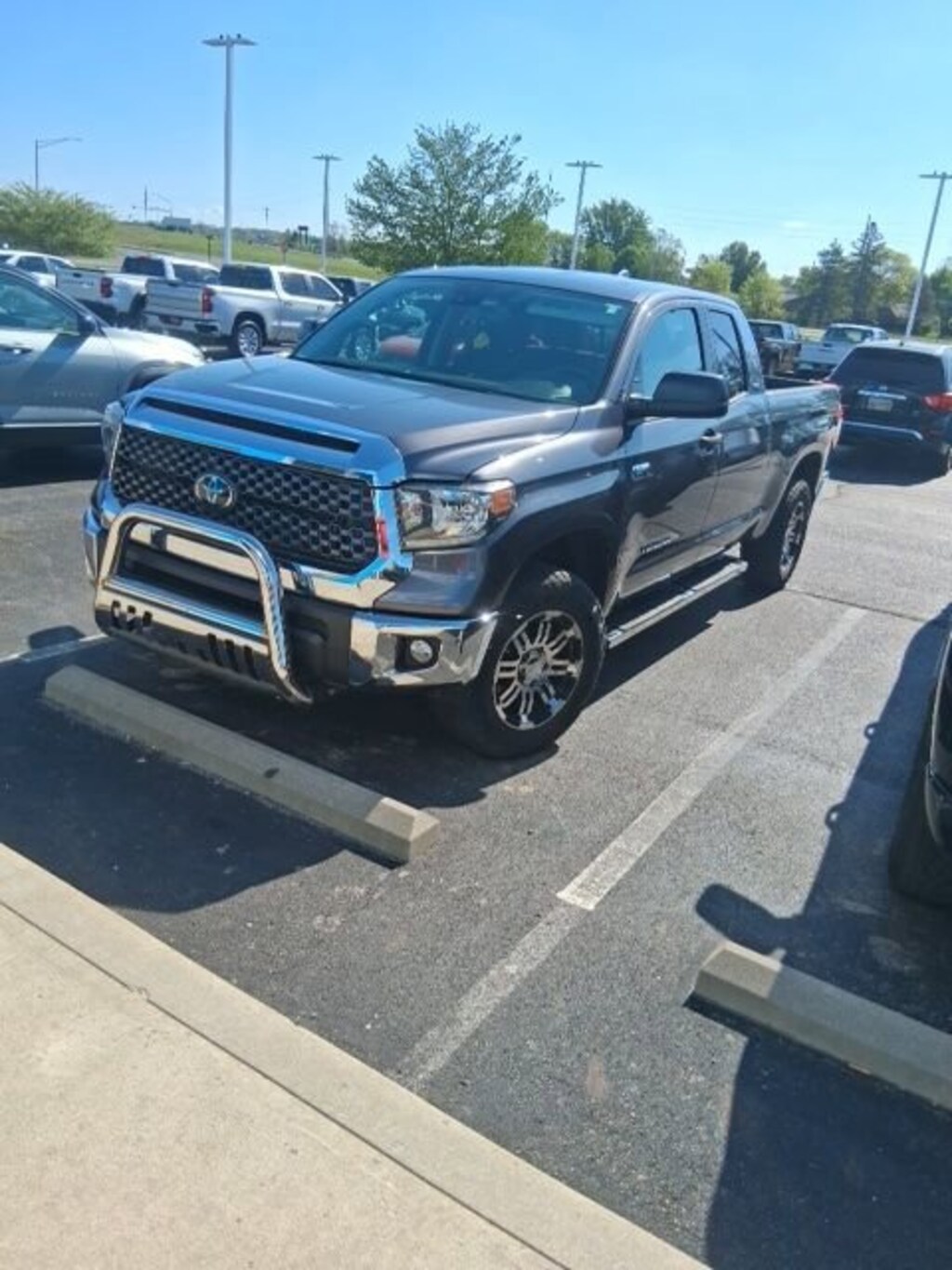 Jeff Wyler Springfield Auto Mall is excited to offer this good-looking 2020 Toyota Tundra SR5 in Magnetic Gray Metallic. Well equipped with: 18 Styled Steel Wheels, 3-Passenger Front Bench Seat, 4-Wheel Disc Brakes, 4.30 Axle Ratio, ABS brakes, Air Conditioning, All Weather Floor Liner & Door Sill Protector Pkg, AM/FM radio: SiriusXM, Apple CarPlay/Android Auto, Auto High-beam Headlights, Brake assist, Brushed Stainless Steel Stepboards, Deck Rail System, Delay-off headlights, Driver door bin, Dual front impact airbags, Dual front side impact airbags, Electronic Stability Control, Emergency communication system: Safety Connect with 1-year trial, Exterior Parking Camera Rear, Fabric Seat Trim, Front anti-roll bar, Front Center Armrest w/Storage, Front reading lights, Front wheel independent suspension, Fully automatic headlights, Heated door mirrors, Illuminated entry, Knee airbag, Low tire pressure warning, Occupant sensing airbag, Outside temperature display, Overhead airbag, Overhead console, Panic alarm, Passenger door bin, Power door mirrors, Power steering, Power windows, Radio data system, Rear reading lights, Rear step bumper, Remote keyless entry, Safety Connect, SiriusXM Radio, Speed control, Speed-sensing steering, Split folding rear seat, Steering wheel mounted audio controls, Tachometer, Tilt steering wheel, Traction control, Trip computer, and Voltmeter. Ask about available certifications. Used vehicles 10 years of age or newer with less than 100,000 miles are eligible for the Wyler Assurance Program, but eligible vehicles must pass our reconditioning process and multi-point inspection. Provided the vehicle passes inspection, vehicles will be eligible for the 6 month/6,000 mile limited warranty. The 6 month/6,000 mile limited warranty is NOT available on AS-IS vehicles, wholesale vehicles, lease buyback/pass-thru vehicles or un-inspected vehicles. Note that this program can also apply to vehicles where the remaining factory coverage is less than 6 months or 6,000 miles. Please check the Federal Trade Commission (FTC) Buyers guide on the vehicle for full details as to whether or not warranty coverage may apply. Contact Dealer for additional details. The Wyler Assurance 6 month/6,000 Mile limited warranty ends 6 months from the date of the Retail Purchase Agreement (BUYERS ORDER) or when the vehicle's odometer registers 6,000 additional miles to the mileage listed on the BUYERS ORDER, whichever comes first. Your Deductible - The warranty holder on your contract pays the first $100 of each covered repair.