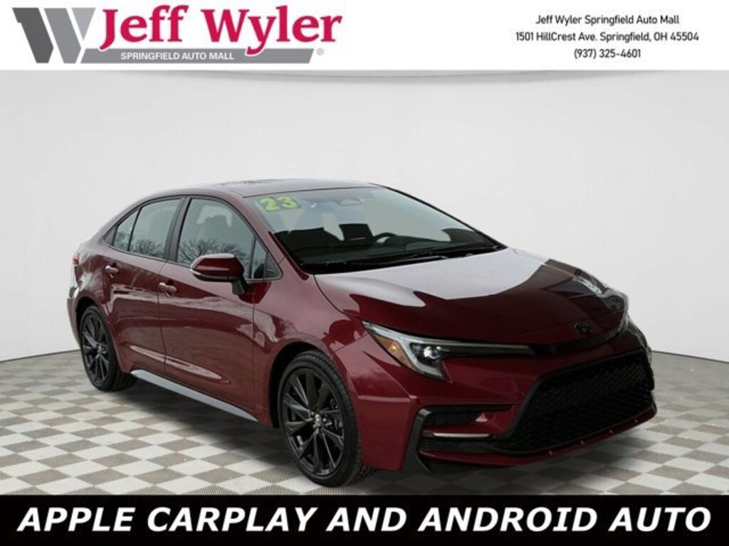 Jeff Wyler Springfield Auto Mall is honored to offer this stunning 2023 Toyota Corolla SE in Red. Well equipped with: 4-Wheel Disc Brakes, 6 Speakers, ABS brakes, Air Conditioning, Alloy wheels, AM/FM radio: SiriusXM, Auto High-beam Headlights, Automatic temperature control, Brake assist, Bumpers: body-color, Delay-off headlights, Driver door bin, Driver vanity mirror, Dual front impact airbags, Dual front side impact airbags, Electronic Stability Control, Emergency communication system: Safety Connect (up to 10-year trial subscription), Exterior Parking Camera Rear, Four wheel independent suspension, Front anti-roll bar, Front Bucket Seats, Front Center Armrest, Front reading lights, Front Sport Seats, Fully automatic headlights, Heated door mirrors, Illuminated entry, Knee airbag, Leather steering wheel, Low tire pressure warning, Occupant sensing airbag, Outside temperature display, Overhead airbag, Panic alarm, Passenger door bin, Passenger vanity mirror, Power door mirrors, Power steering, Power windows, Premium Seat Trim, Radio data system, Radio: 8 Toyota Audio Multimedia, Rear anti-roll bar, Rear seat center armrest, Rear side impact airbag, Rear window defroster, Remote keyless entry, Speed control, Split folding rear seat, Spoiler, Steering wheel mounted audio controls, Tachometer, Telescoping steering wheel, Tilt steering wheel, Traction control, Trip computer, Turn signal indicator mirrors, Variably intermittent wipers, and Wheels: 18 Alloy w/Graphite Finish. Ask about available certifications. Used vehicles 10 years of age or newer with less than 100,000 miles are eligible for the Wyler Assurance Program, but eligible vehicles must pass our reconditioning process and multi-point inspection. Provided the vehicle passes inspection, vehicles will be eligible for the 6 month/6,000 mile limited warranty. The 6 month/6,000 mile limited warranty is NOT available on AS-IS vehicles, wholesale vehicles, lease buyback/pass-thru vehicles or un-inspected vehicles. Note that this program can also apply to vehicles where the remaining factory coverage is less than 6 months or 6,000 miles. Please check the Federal Trade Commission (FTC) Buyers guide on the vehicle for full details as to whether or not warranty coverage may apply. Contact Dealer for additional details. The Wyler Assurance 6 month/6,000 Mile limited warranty ends 6 months from the date of the Retail Purchase Agreement (BUYERS ORDER) or when the vehicle's odometer registers 6,000 additional miles to the mileage listed on the BUYERS ORDER, whichever comes first. Your Deductible - The warranty holder on your contract pays the first $100 of each covered repair.